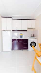 Güven Apart Otel’de her daire, misafirlerimize kendi evlerindeki özgürlüğü ve konforu sunmak için tam donanımlı mutfak, oturma alanları ve modern imkanlarla tasarlandı.